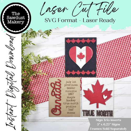Canada Day Sign Trio Bundle Laser Cut File | Interchangeable Frame | Canada Sign Inserts | 5" x 6.25" signs