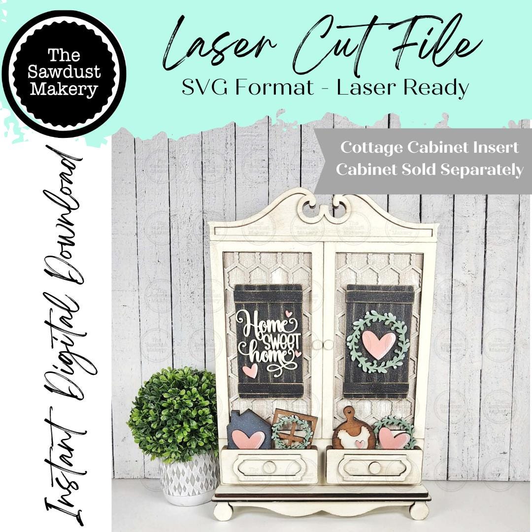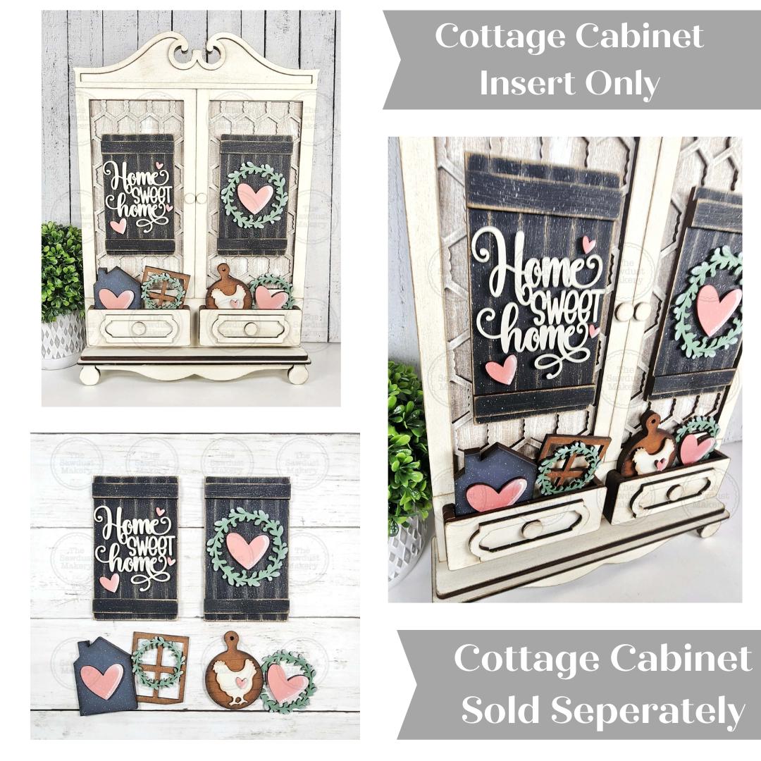 Add-on Home Sweet Home Cottage Cabinet Insert SVG | Laser Cut File | Cottage Cabinet Shelf Sitter | Seasonal Insert | Interchangeable Decor