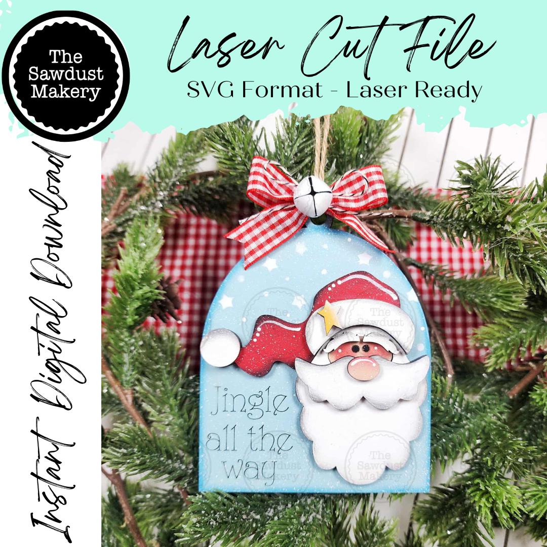 Arched Santa Ornament measures approx 3.7" wide x 4.75" tall.