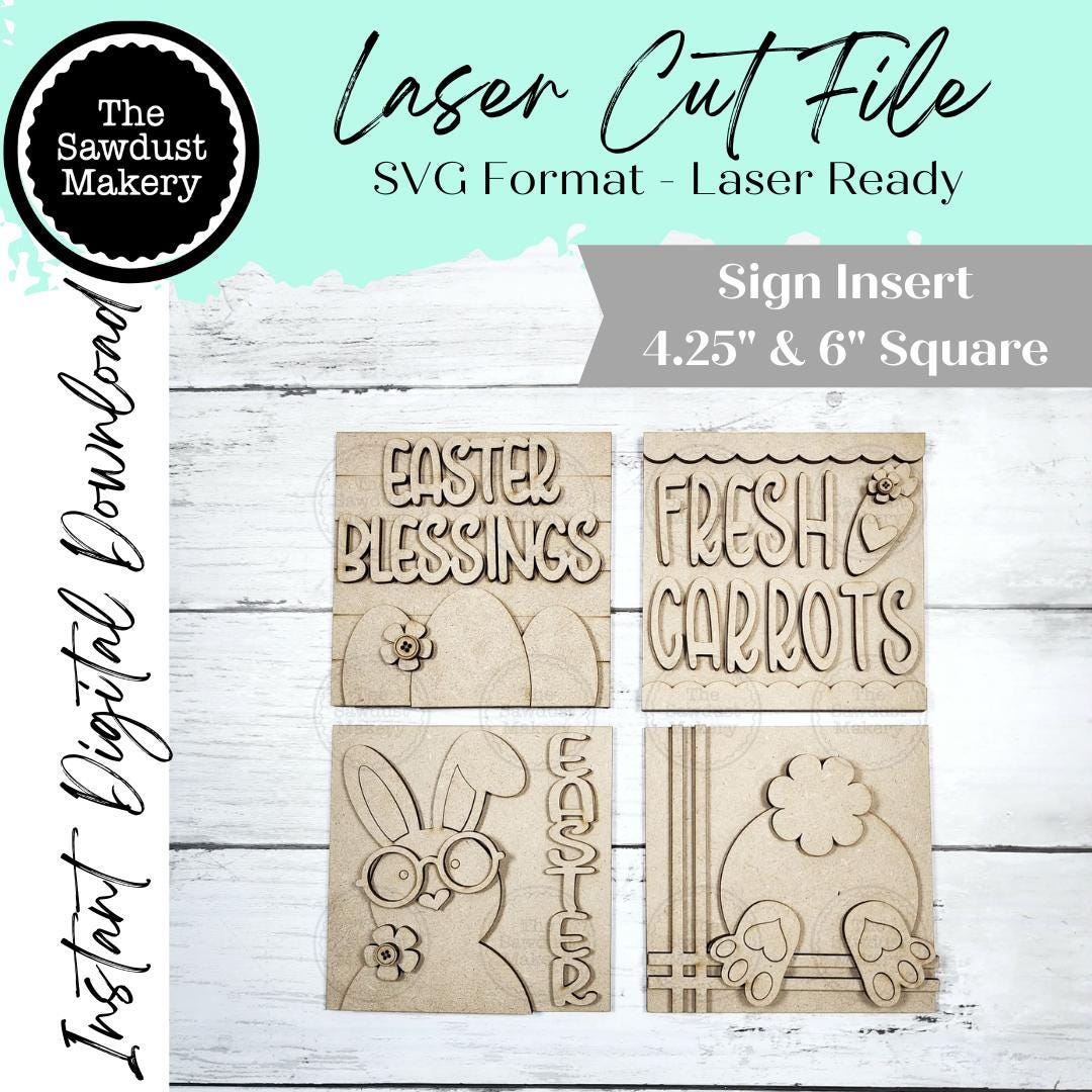 ~ 4.25" x 4.25" Square Signs. File comes with the 4 signs nested to fit on one sheet of 11x19 material.