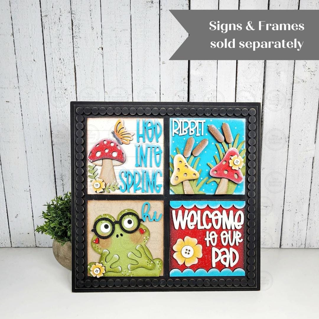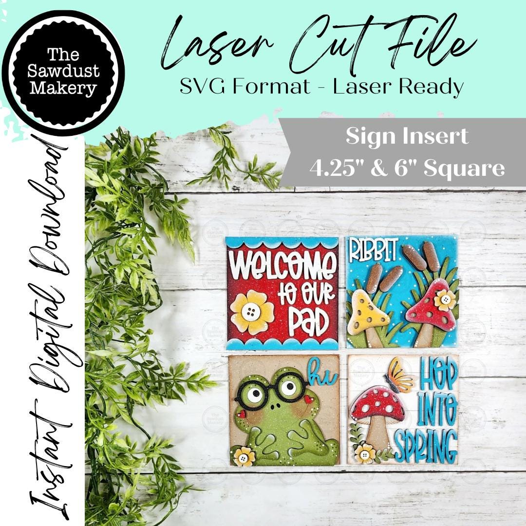 Frog Spring Sign Sign Bundle | Laser Cut File | 4.25" & 6" Interchangeable Signs | Frog Sign Inserts | Spring Sign Bundle