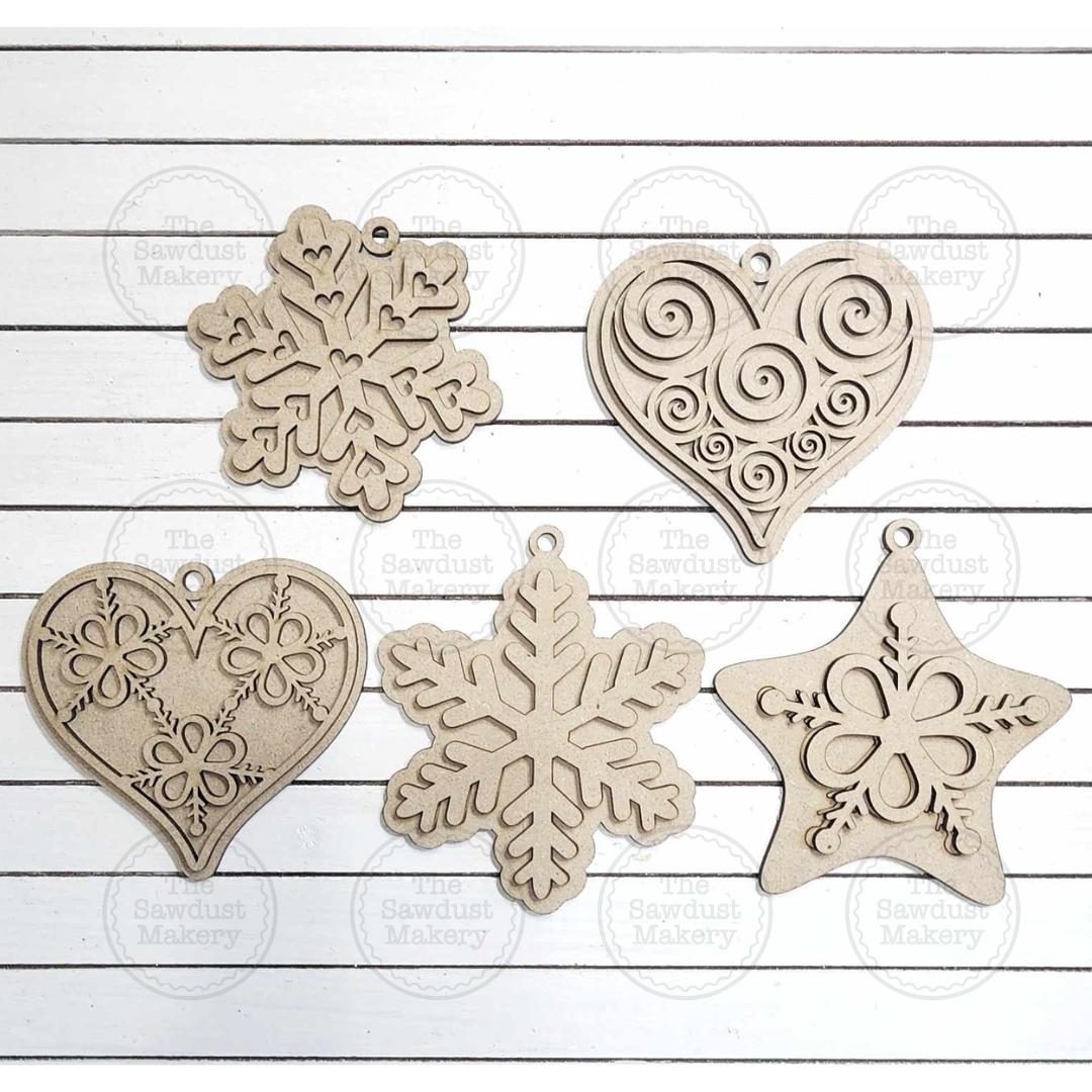 This file contains all 5 ornaments in one SVG download. File uses less than 1 sheet of 11x19" material
