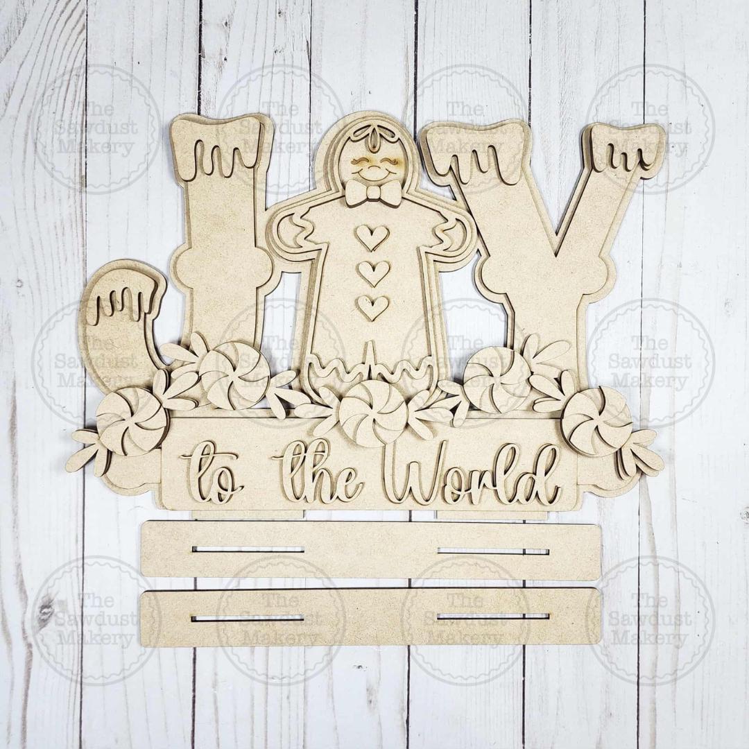Standing Gingerbread Joy Word Art Shelf Sitter measures approximately 9" tall x 12.8" wide.