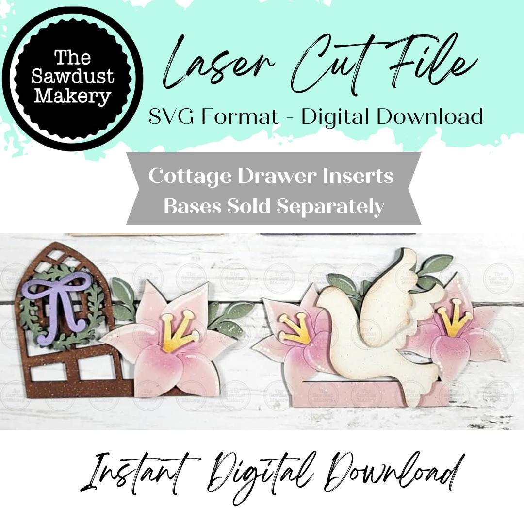 • Load image into Gallery viewer, He is Risen Lily Cottage Drawer Insert SVG | Laser Cut File | Cottage Drawer Shelf Sitter | Seasonal Insert | Interchangeable Decor
