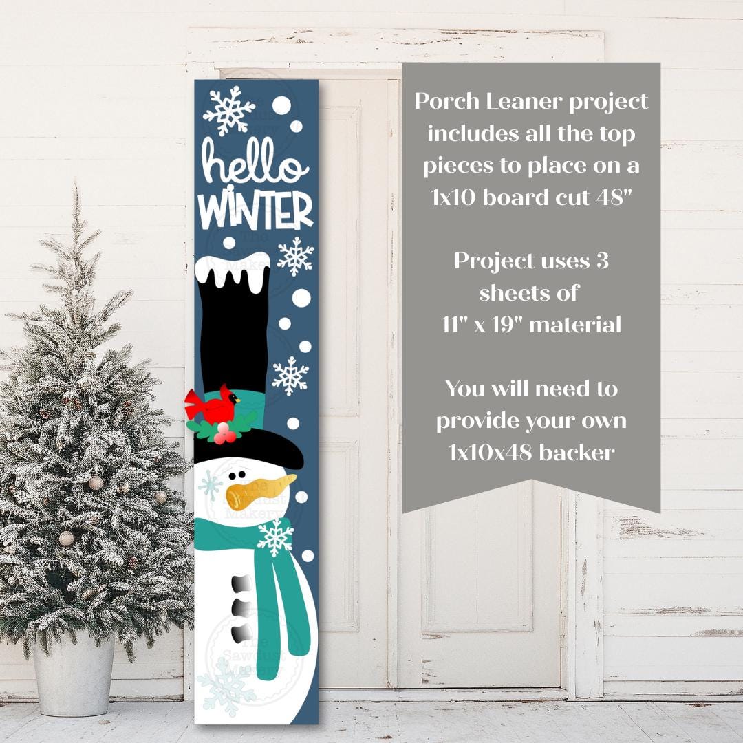 Hello Winter porch leaner measures approx. 10" x 48" wide when completed.