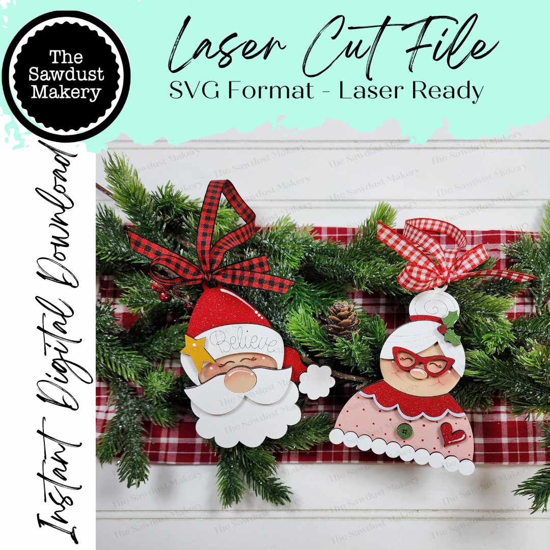 Santa and Mrs. Claus ornaments measure approx. 4" wide x 5" tall.