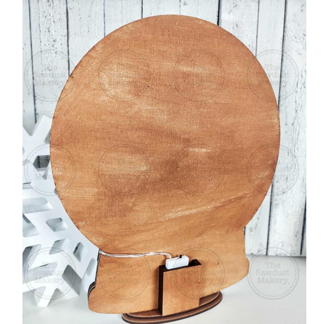 Snowman Snow Globe Light Up Shelf Sitter measures in at approximately 10.85" tall x 8.85" wide.