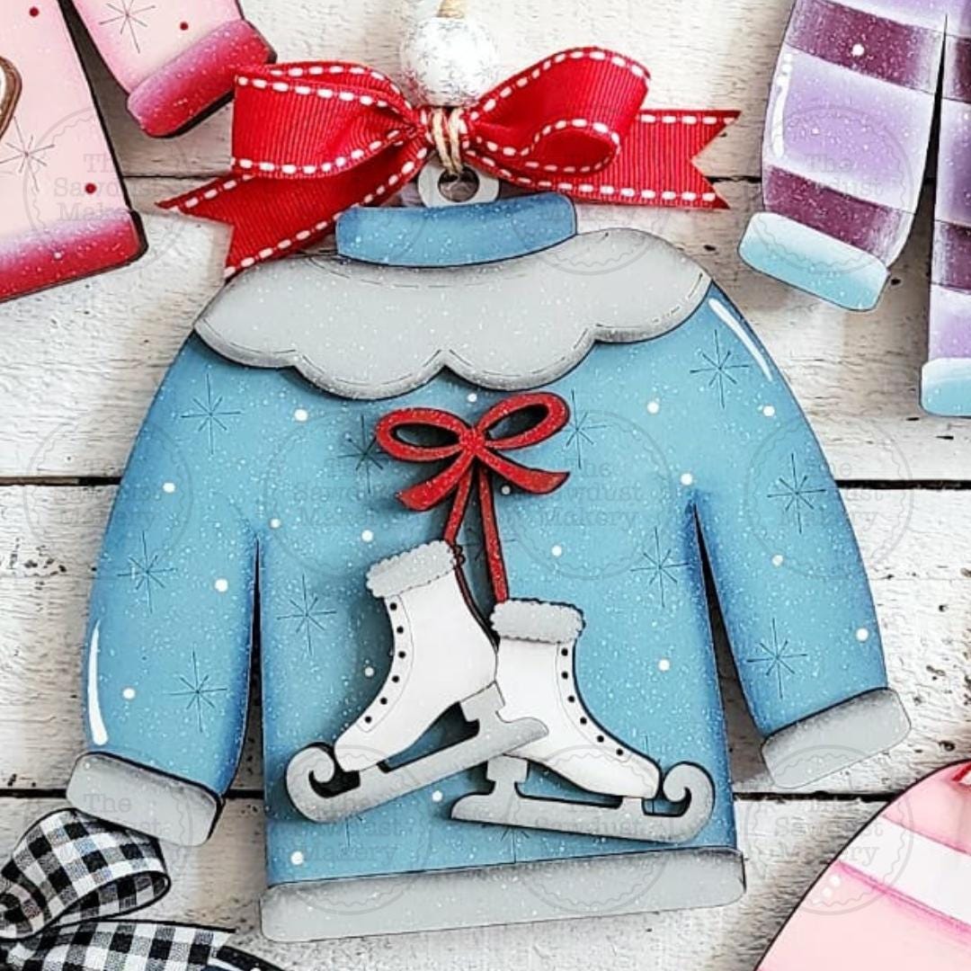 Each Sweater Ornament measures approx. 5.5" w x 5" tall.